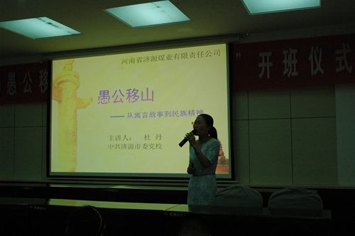 之后,濟源市委黨校講師杜丹帶來了題為《愚公移山—從寓言故事到民族精神》的精彩講座,從口口相傳的民間傳說呂三太“別倒山”到《列子·湯問》愚公移山的寓言神話,從近代蔡元培,傅斯年對于愚公移山精神的不斷闡釋到毛澤東對愚公移山精神多次引用對中國社會發展的深刻影響。她用親切樸實的語言,嚴謹科學的態度,講述了愚公移山精神成為民族精神的其客觀性和必然性。之后,她有針對性地援引濟源煤業公司64年的發展歷程,將愚公精神從寓言故事升華到民族精神,再具體聯系到濟煤精神,鼓勵大家要不斷學習傳承和弘揚愚公精神,再創濟煤輝煌。杜丹老師精彩的講解贏得了廣大干部職工的一致好評。